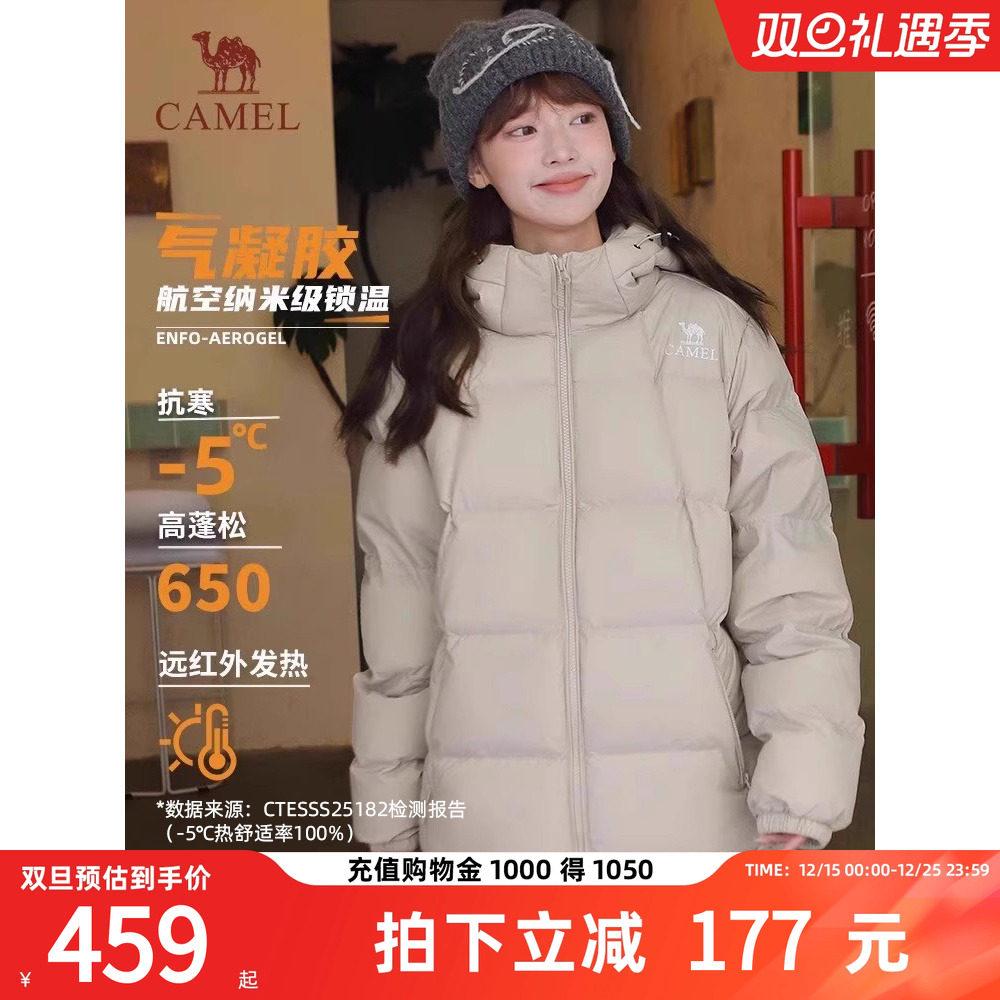 骆驼羽绒服女款2025冬季新款保暖加厚连帽面包服气凝胶羽绒外套女