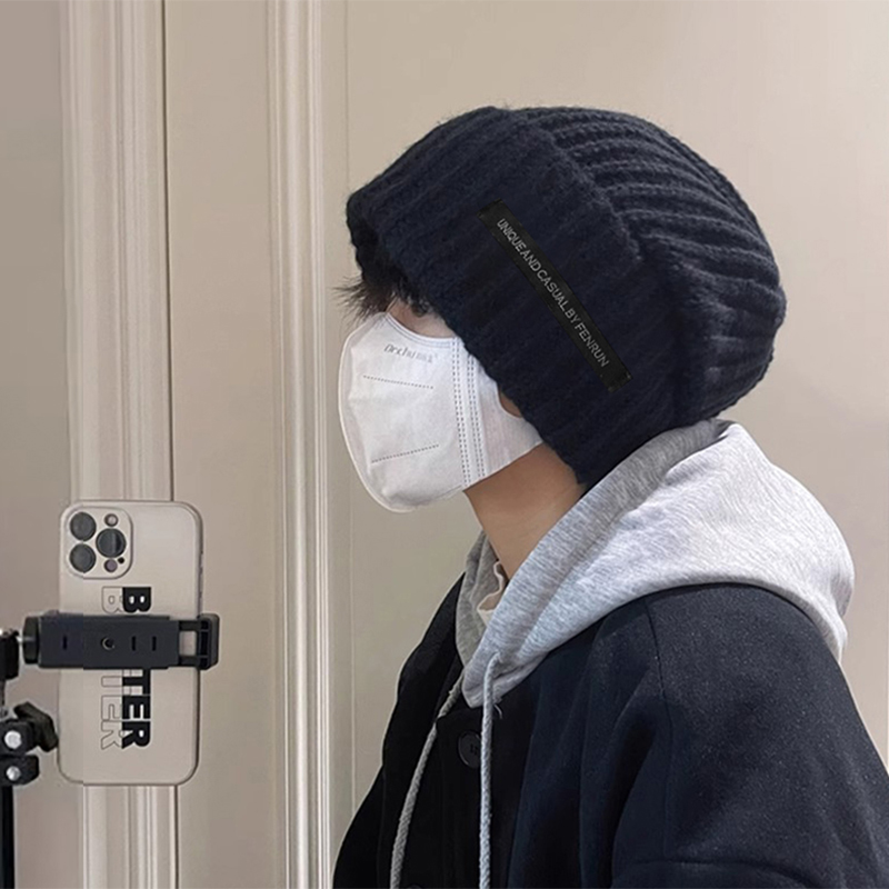 帽子男士秋冬潮毛线帽男款保暖百搭冷帽宽松大头围显脸小针织帽男
