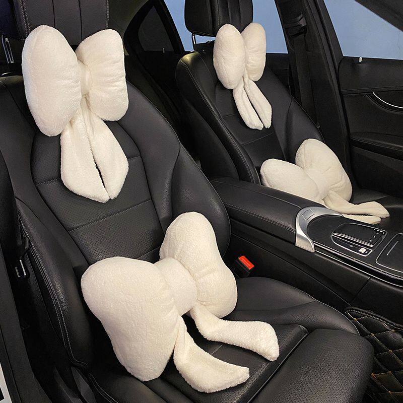 汽车头枕护颈枕网红蝴蝶结座椅颈椎枕棉麻车载枕头靠颈枕车枕女神