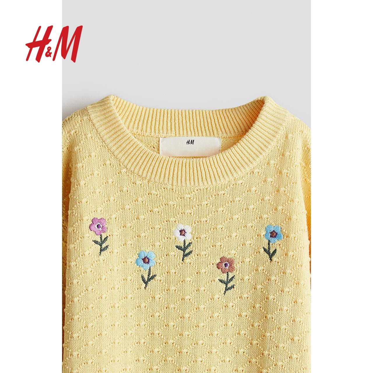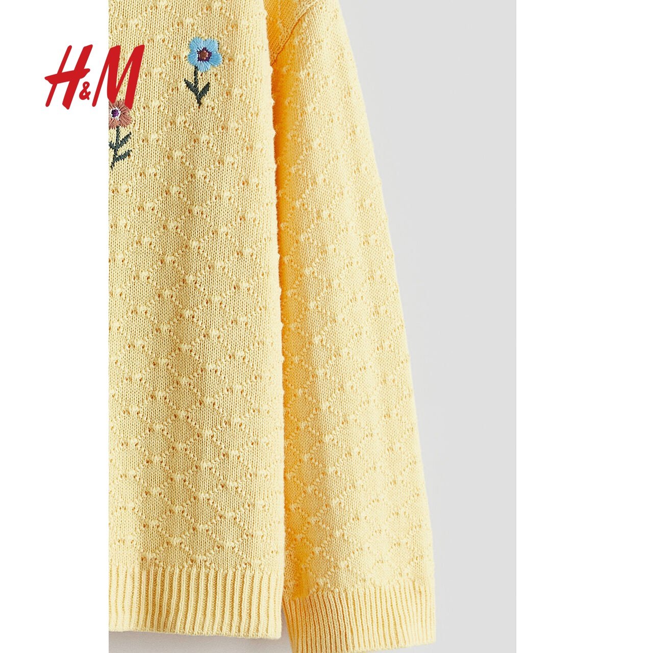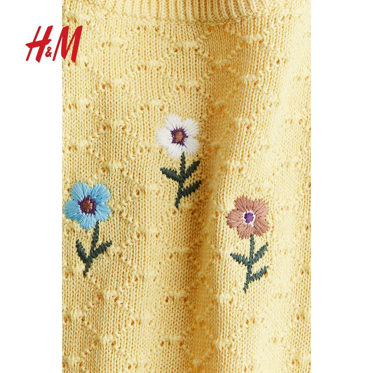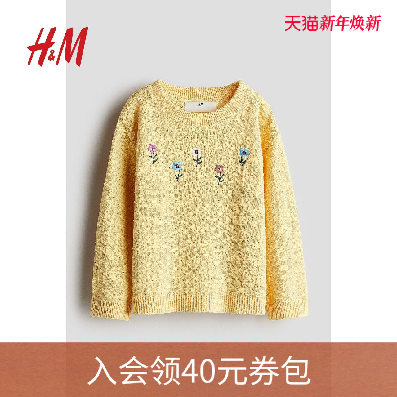 HM童装儿童女童毛衣冬季柔软罗纹印花长袖翻领针织衫1260182