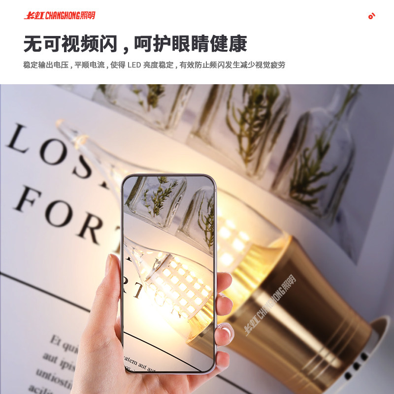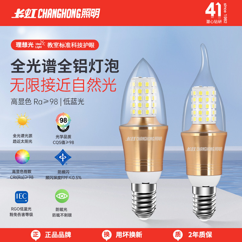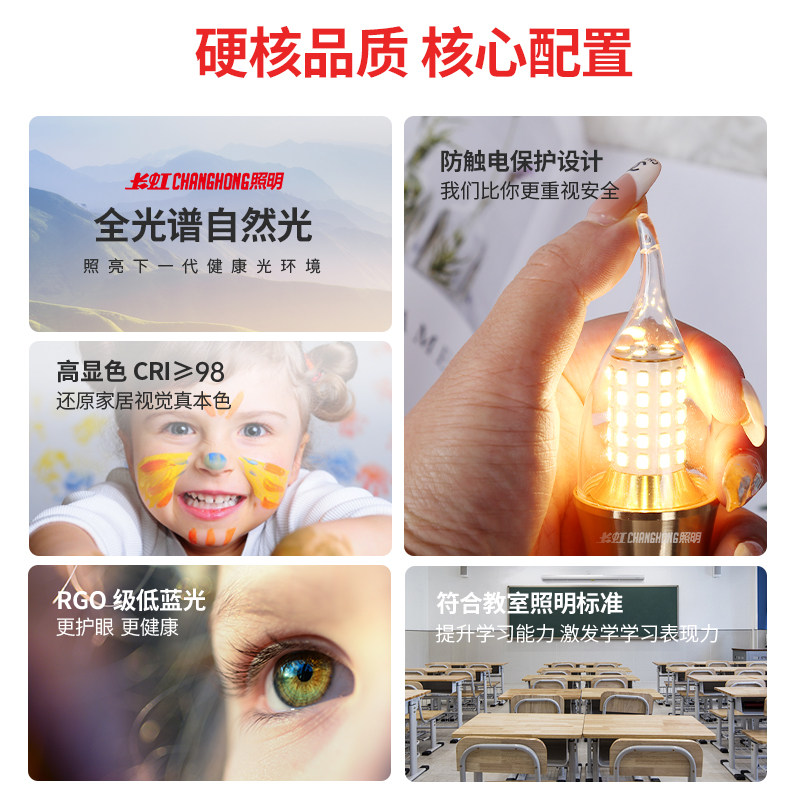 长虹照明led灯泡节能全光谱e14小螺口家用客厅吊灯蜡烛护眼三色