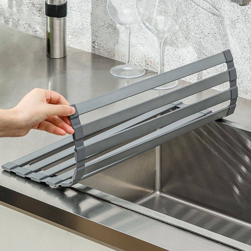 厨房水槽沥水架水池碗碟收纳置物架可折叠碗盘架沥水篮硅胶