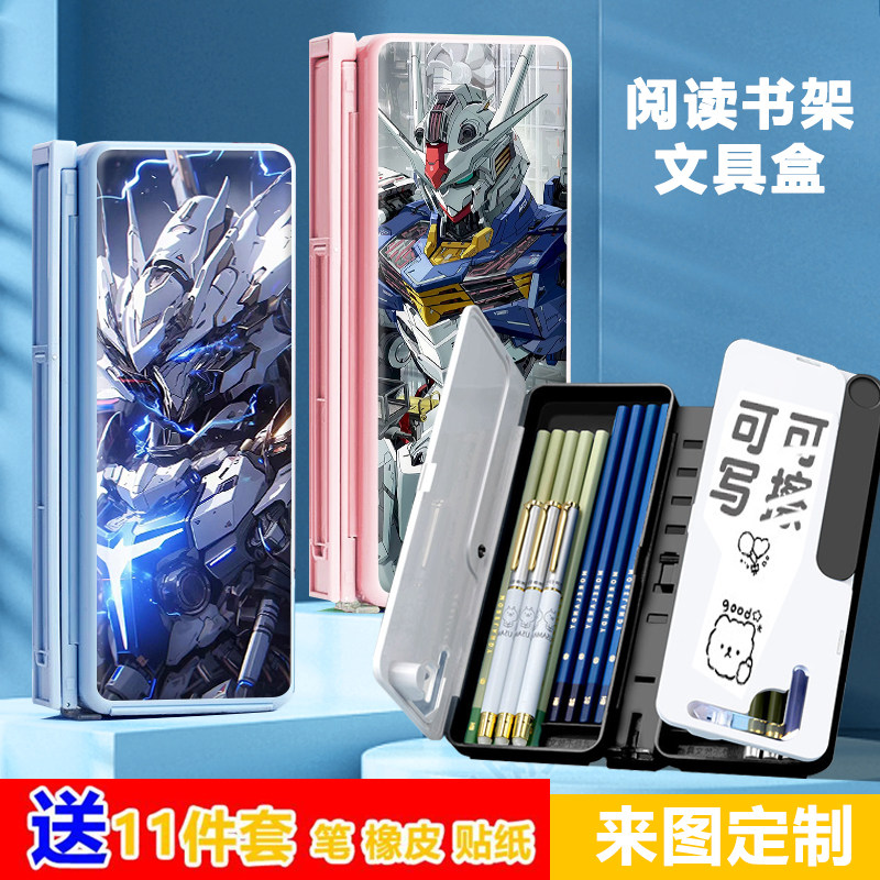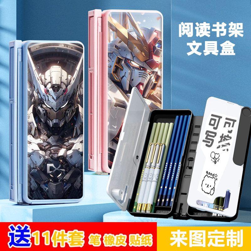 高达机甲可折叠阅读书架笔盒便携桌面支架读书架学生多功能文具盒