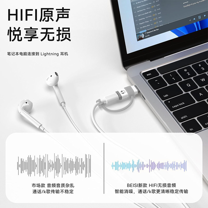 顺丰适用苹果17耳机转接头Type-c转lighting听歌通话线控转接器还原HIFI装音质iphone16音频转接线便携防丢15