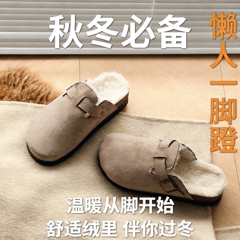 叁叔家~内增高勃肯鞋女加绒秋冬保暖毛毛半拖外穿厚底博肯鞋