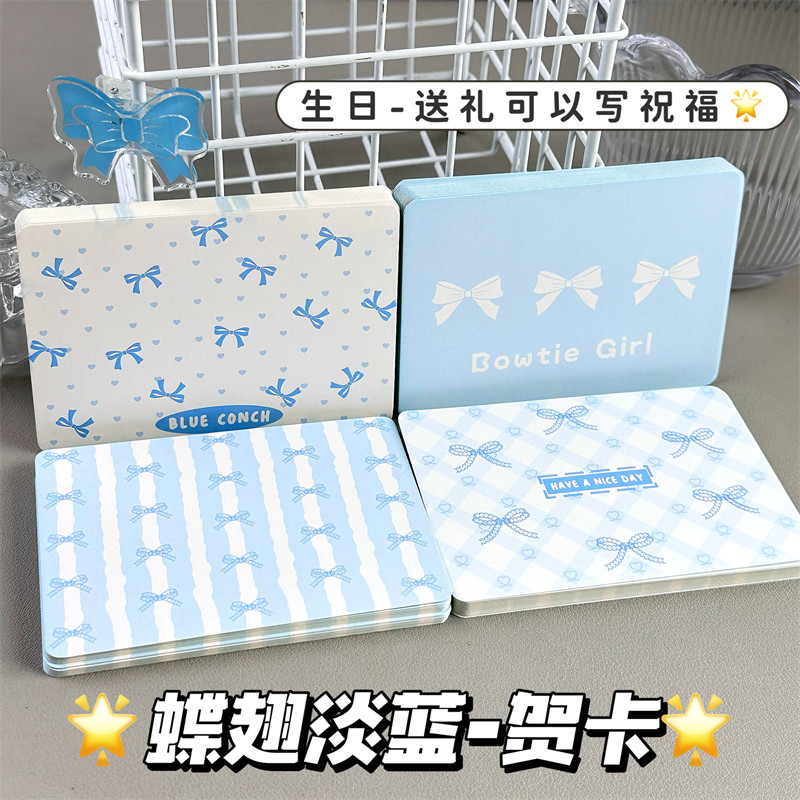原创蝶翅淡蓝留言手写贺卡高颜值ins风花语卡片节日送礼祝福礼物