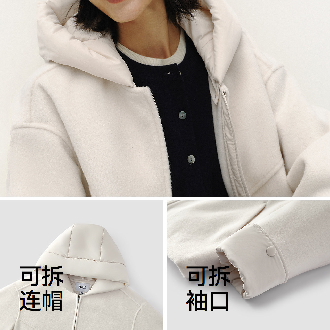 特宽松/介意可拍小一码 可拆卸帽子和袖口