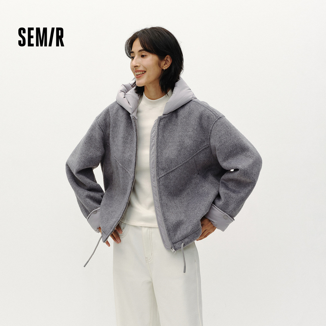 陈都灵同款|商场同款森马外套女冬夹棉毛呢含羊毛2025新款上衣