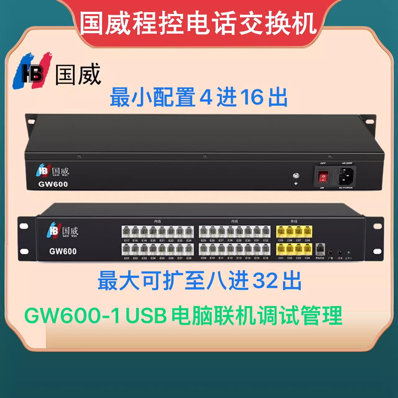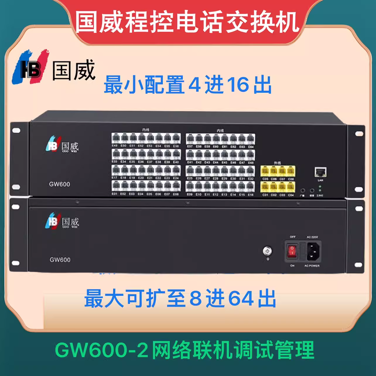 国威GW300/GW600程控电话交换机2 4 8进8 16 24 32 40 48 56 64出