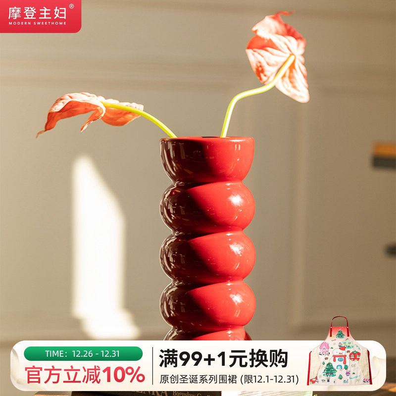 摩登主妇MONAZONE新年马年礼物陶瓷红色花瓶摆件轻奢高级感装饰品