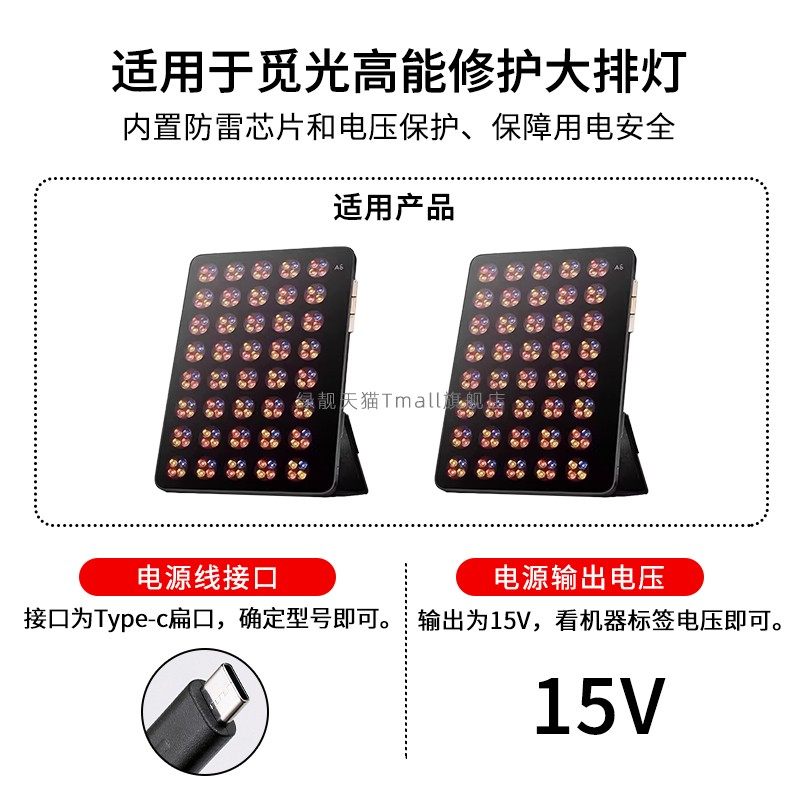 适用于ABM003觅光高能光疗修护大排灯电源适配器觅光红光面罩大排灯充电器15V1.6A-type