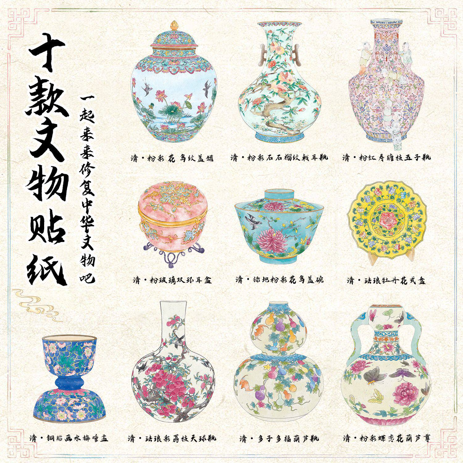 文物修复造景贴纸合集本古董修复贴纸场景diy手工手帐贴纸