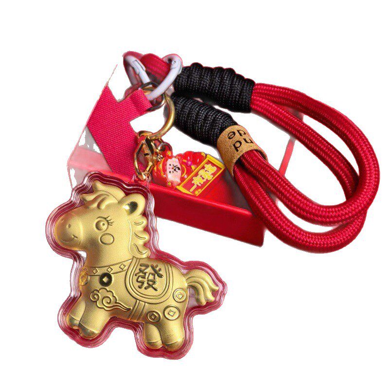 足金马上有钱发财钥匙扣金色挂件饰品手机挂链马年实用送礼小礼品