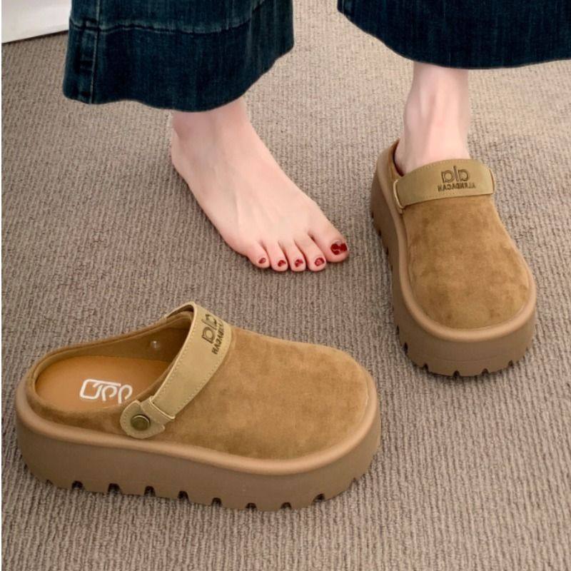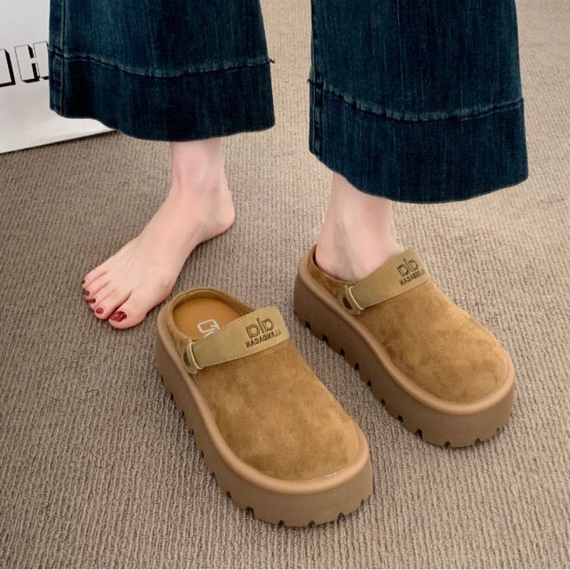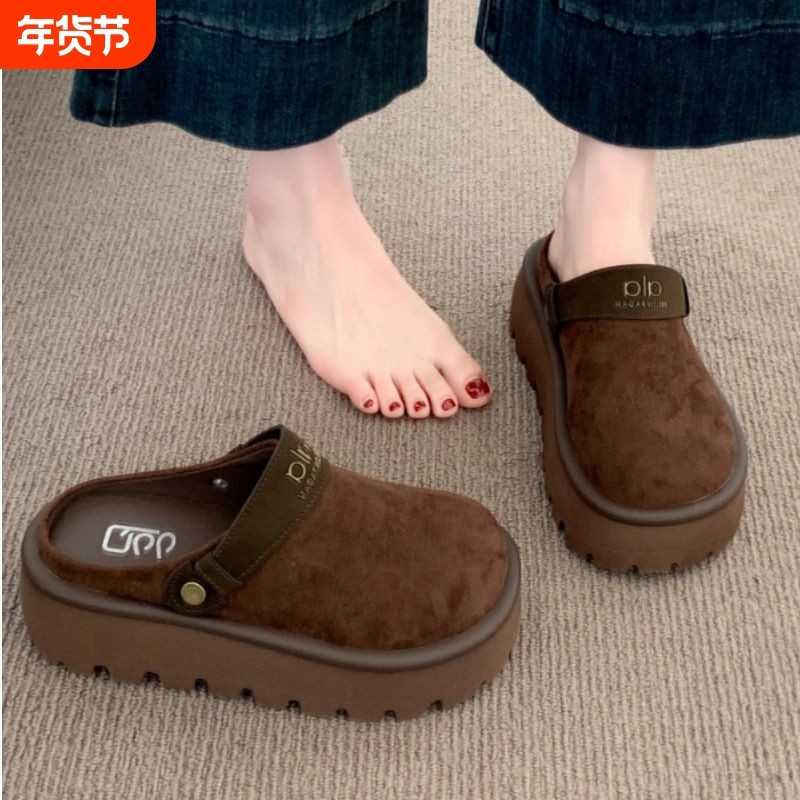 厚底勃肯鞋女2025新款冬季女鞋加绒半拖一脚蹬穆勒鞋子增高博肯鞋
