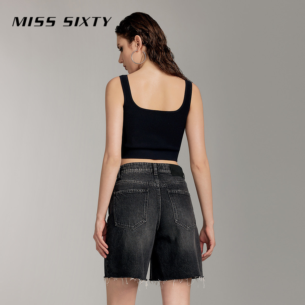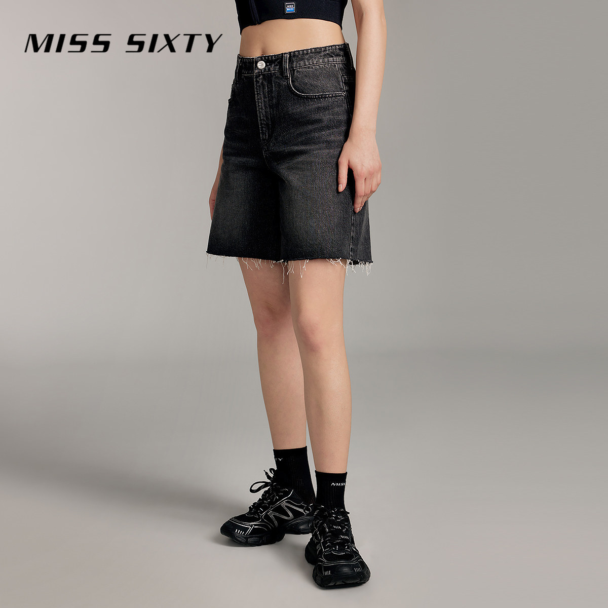 Miss Sixty牛仔短裤高腰显瘦直筒裤复古磨破高街风街头休闲