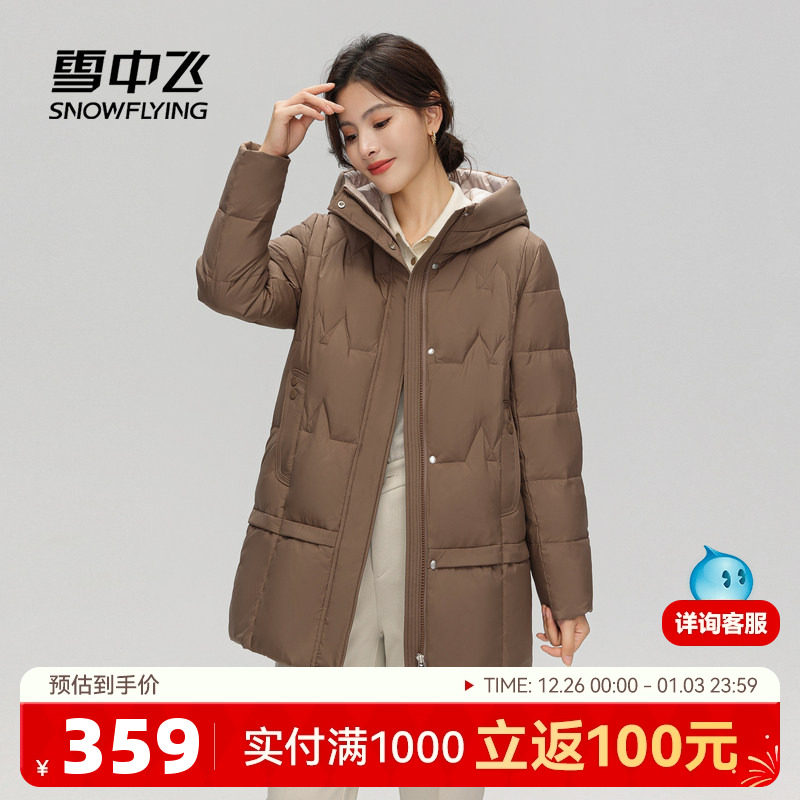 雪中飞2025冬新款女士中老年妈妈短款羽绒服连帽简约防风保暖
