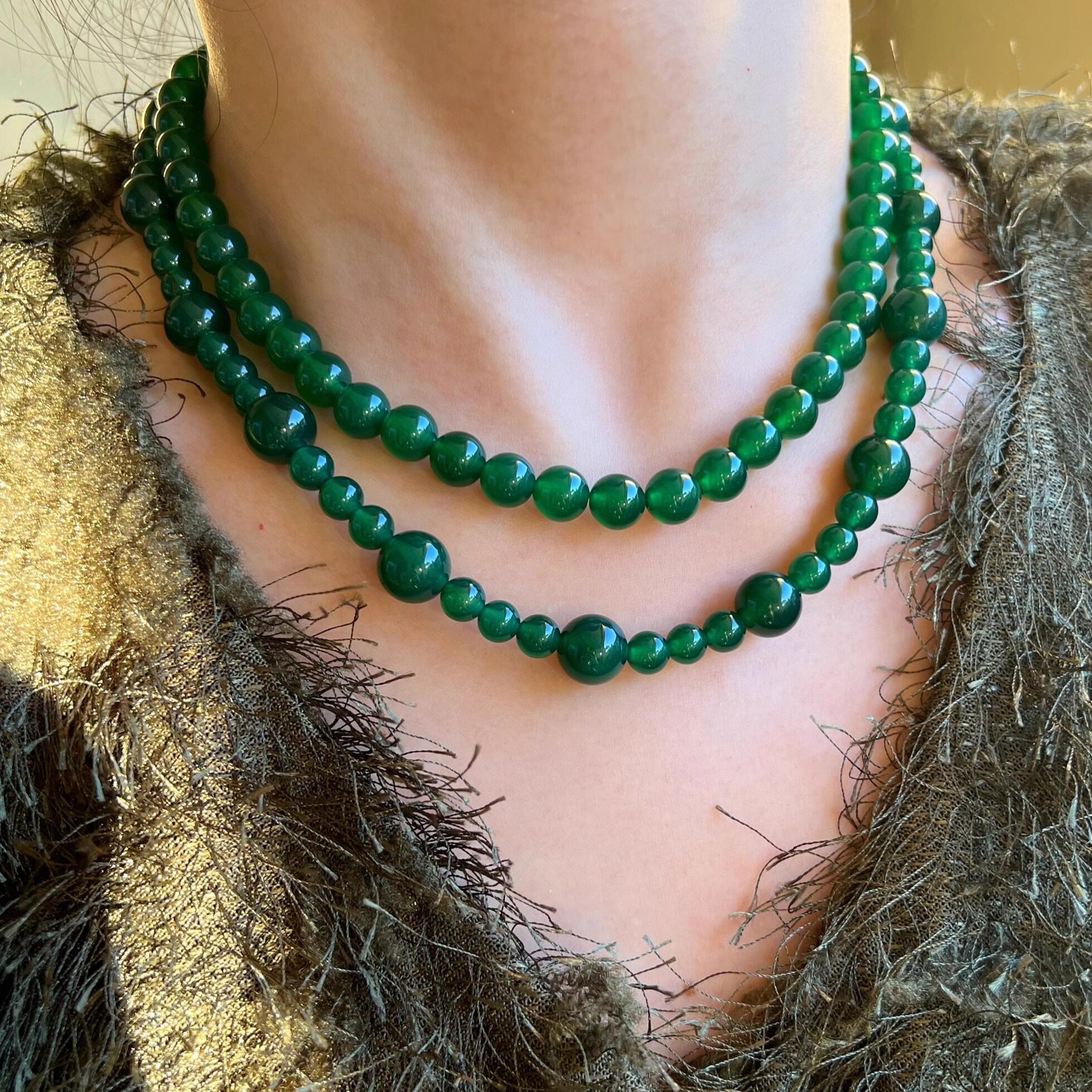 《春来江水》天然7A级绿玉髓玛瑙串珠气质复古新中式项链锁骨链女