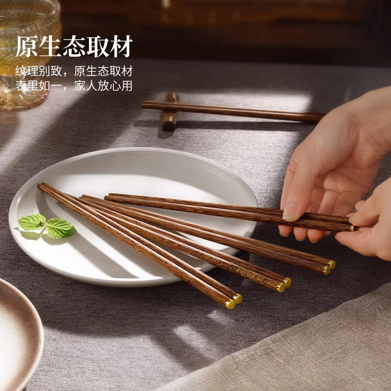 利瓷鸡翅木筷子家用防滑防霉木质快子10双20双家庭套装木箸