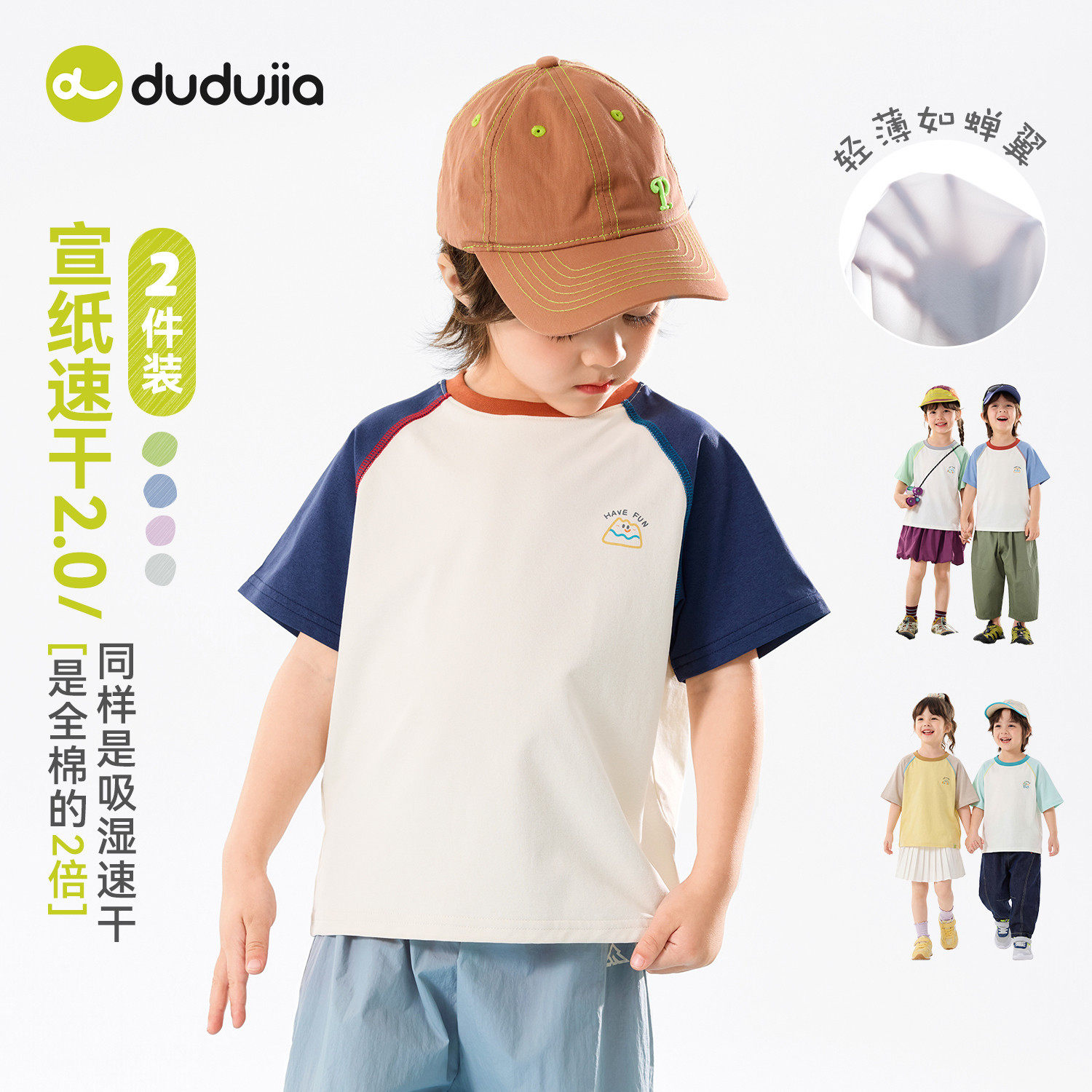 [吸湿速干两件装]嘟嘟家儿童速干衣夏季男童短袖T恤女童夏装上衣
