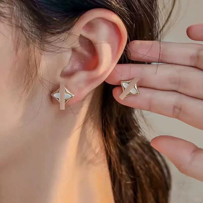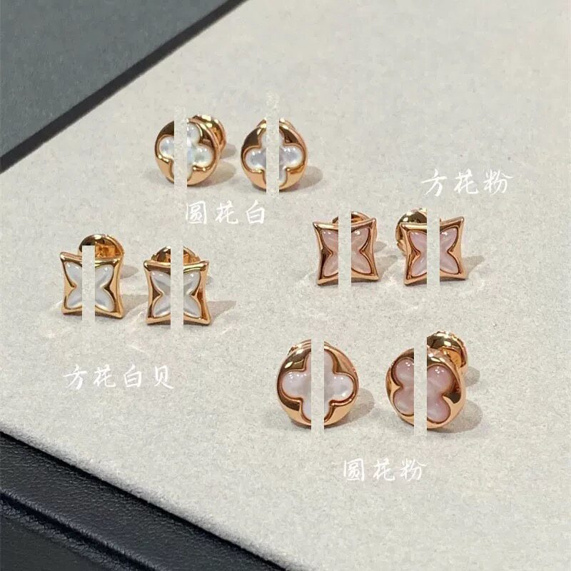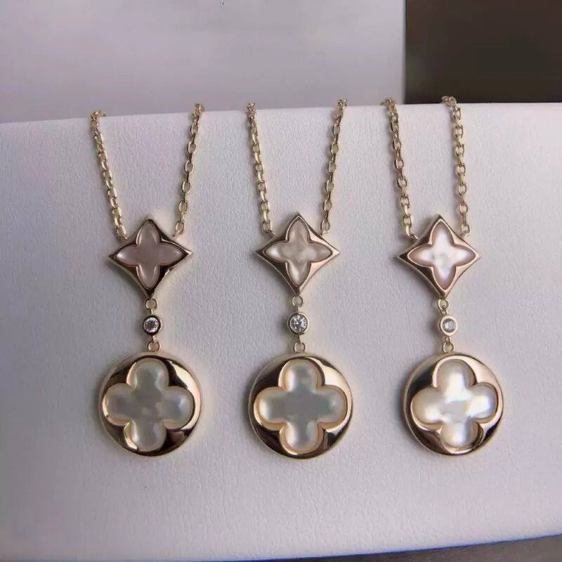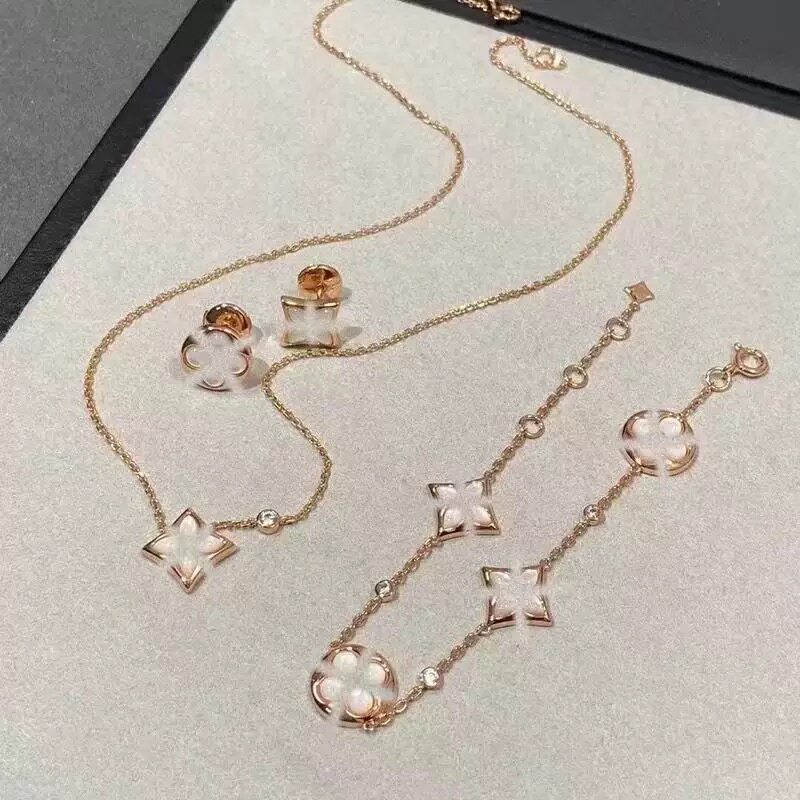 菱形白贝母项链五花手链天河石银耳钉环女轻奢套装玫瑰金钛钢金色
