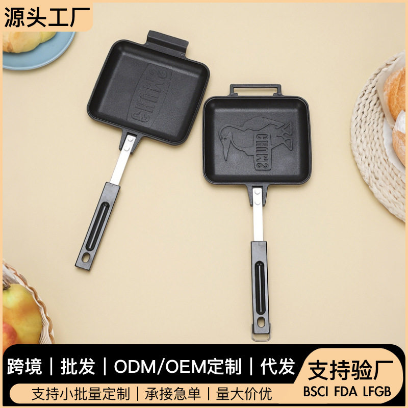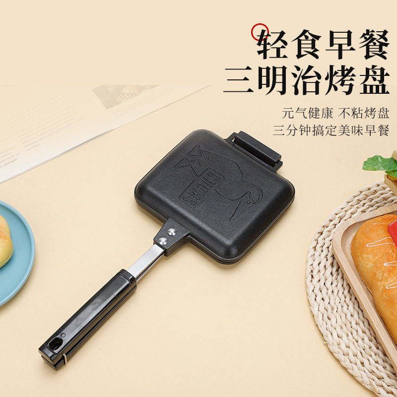 可拆卸木头手柄三明治烤盘 吐司面包双面不沾涂层煎锅
