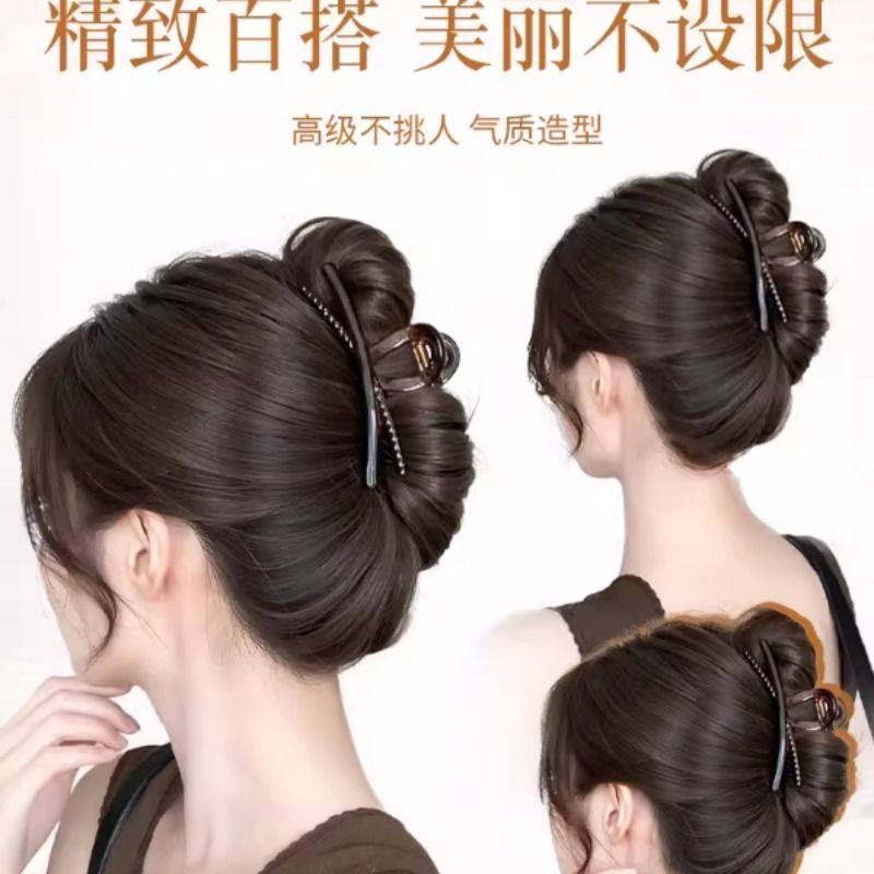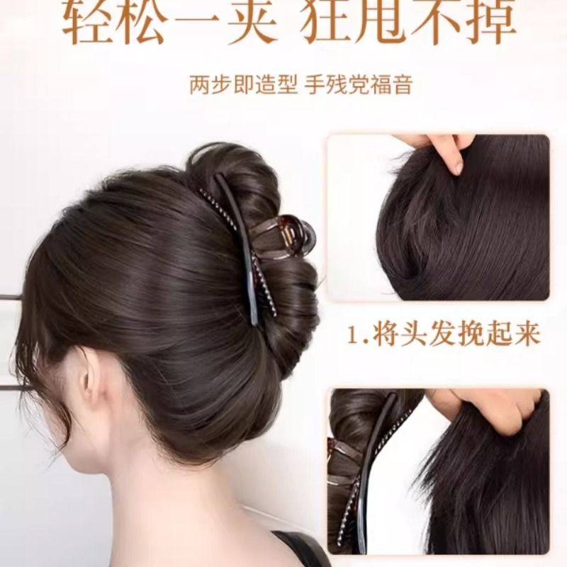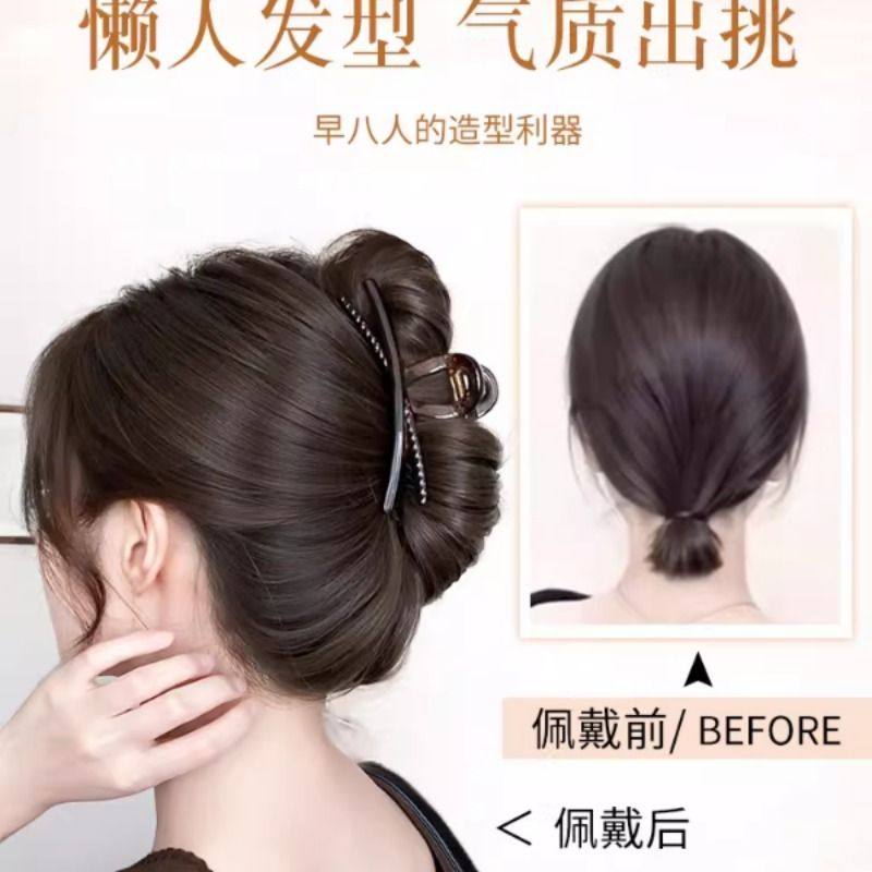 低扎丸子头假发抓夹花苞头盘发神器自然蓬松增发量后脑勺假发包