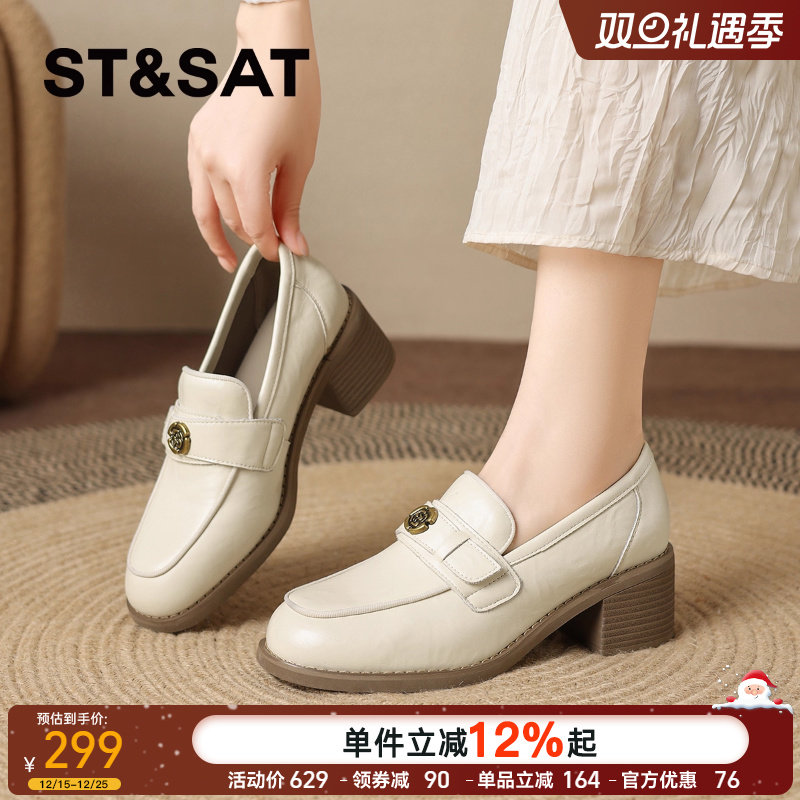 星期六厚底乐福鞋女款黑色皮鞋女通勤粗跟单鞋女鞋子高跟鞋玛丽珍