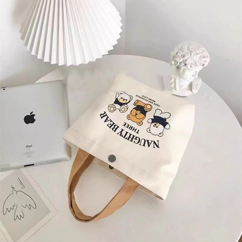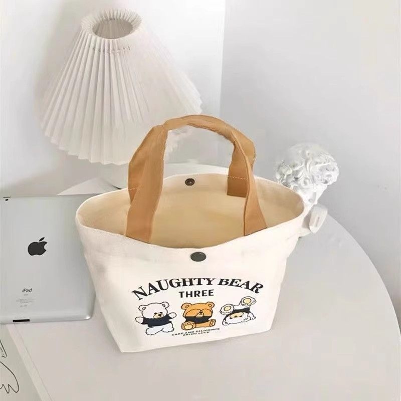 新款小熊帆布包女士上班学生手提包手拎便当饭盒收纳礼品袋帆布袋