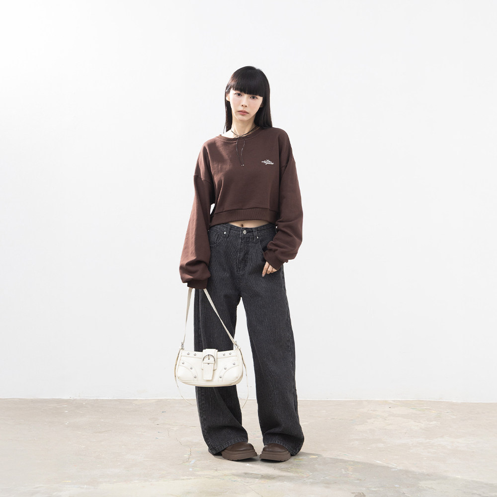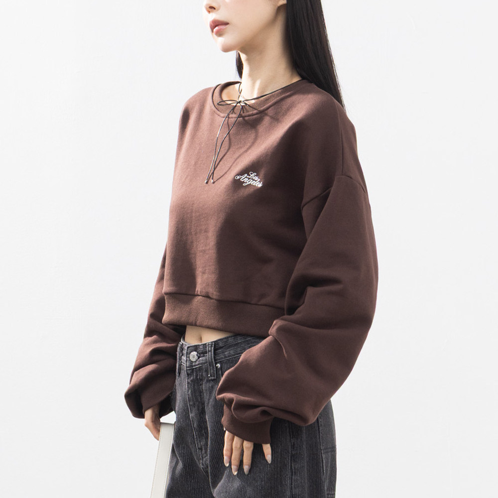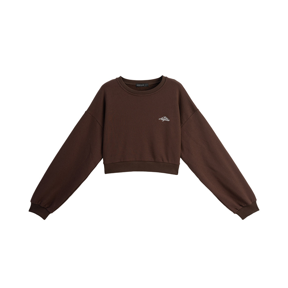 QUEENSHOP 2025秋冬新品女装Los angeles刺绣短版卫衣01110994
