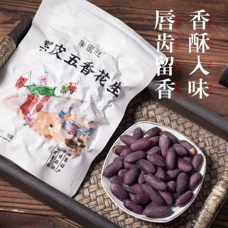 果蜜旺黑皮花生米【五香味】山东特产下酒菜炒货含花青素富硒坚果