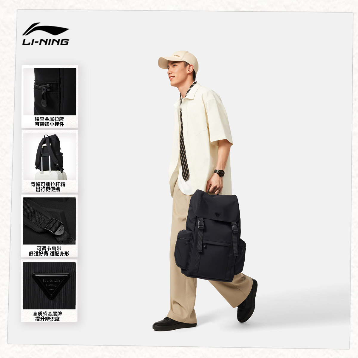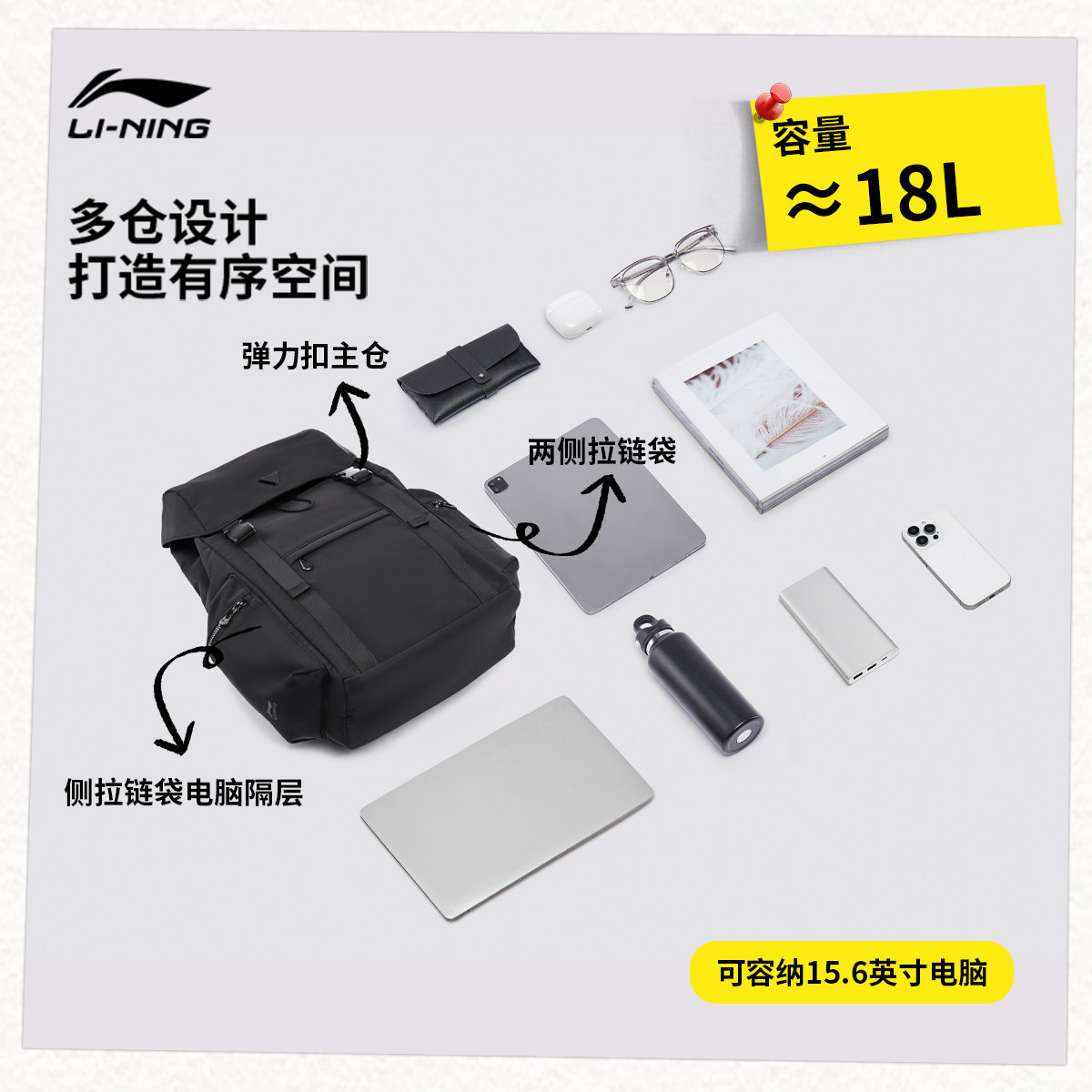 李宁双肩包男女2026新款上班通勤旅行出差高级背包学生书包运动包