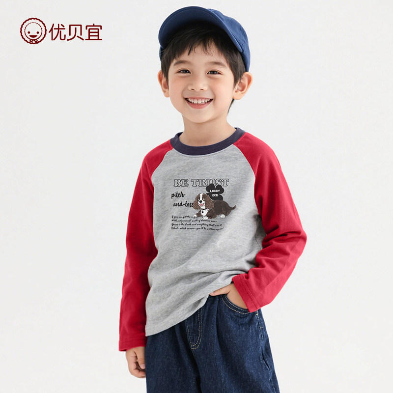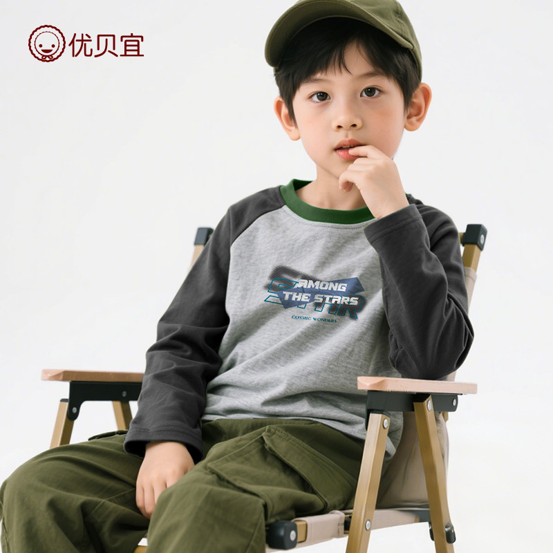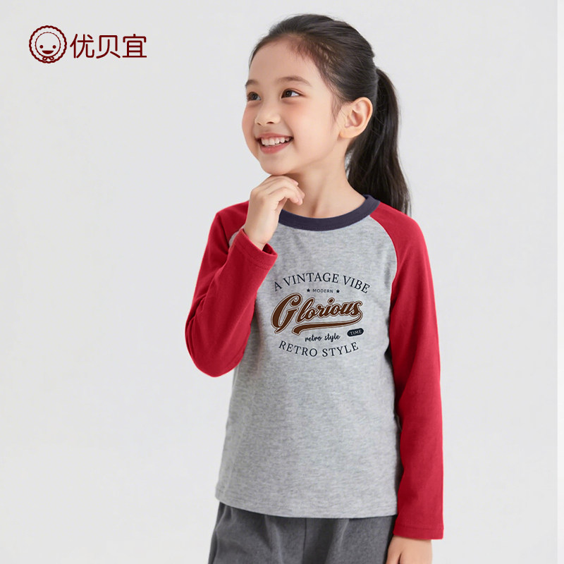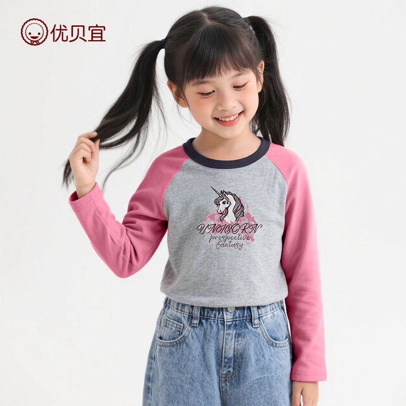 优贝宜儿童长袖纯棉T恤2025新品男打底衫女童上衣中大童长t秋冬装