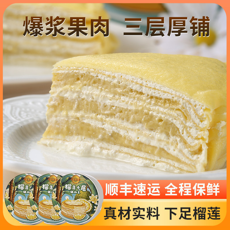 榴莲千层蛋糕动物奶油果肉网红爆浆生日蛋糕甜品点顺丰糕点手工