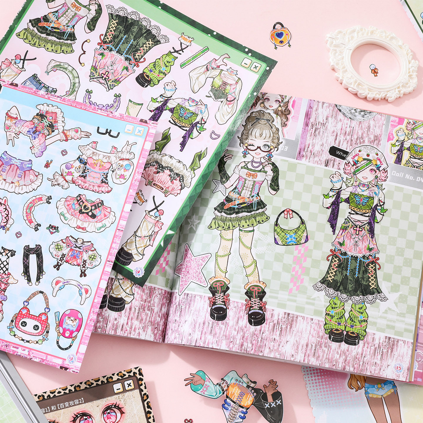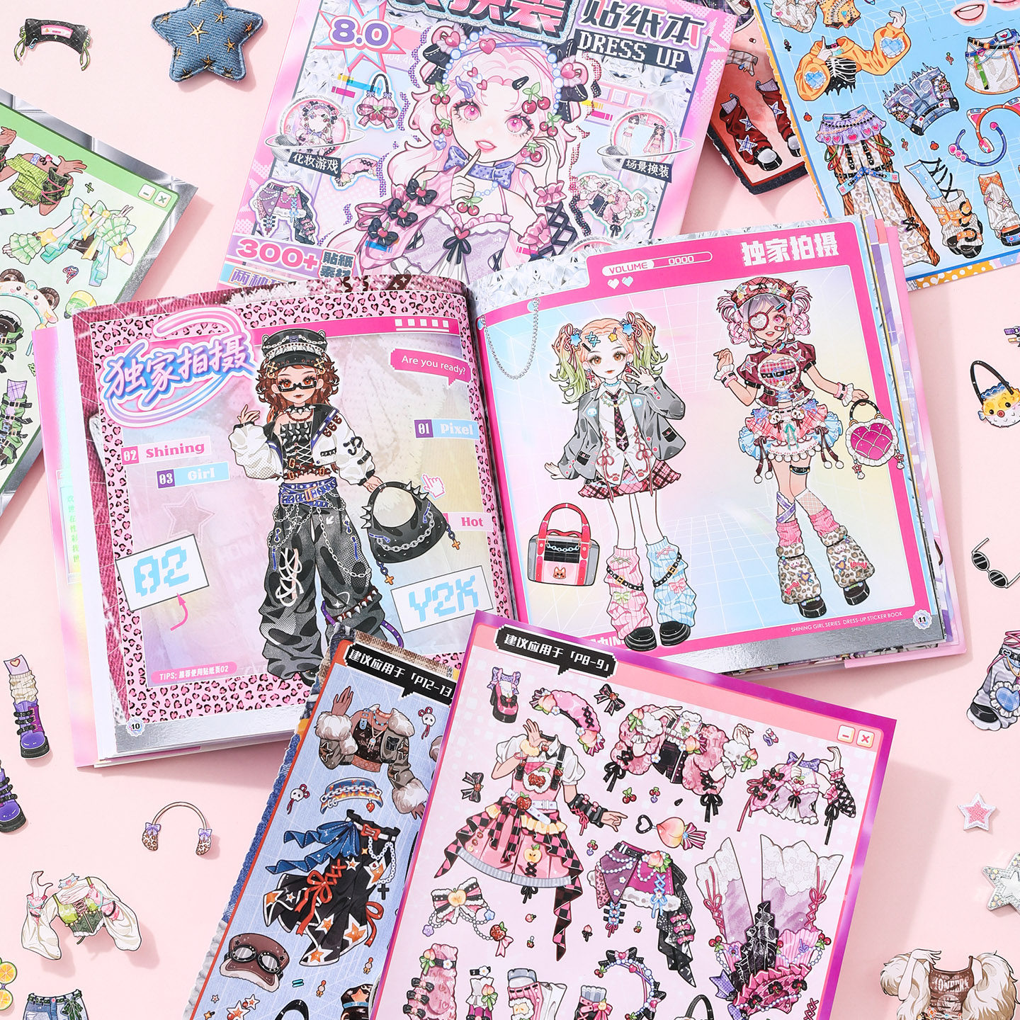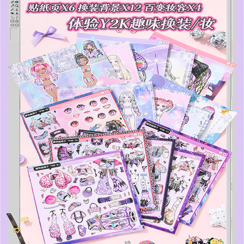 (换装+美妆)300+素材免剪无白边千禧风y2k主题不重复可爱人物少女换装游戏贴纸手帐DIY56789岁女孩生日礼物