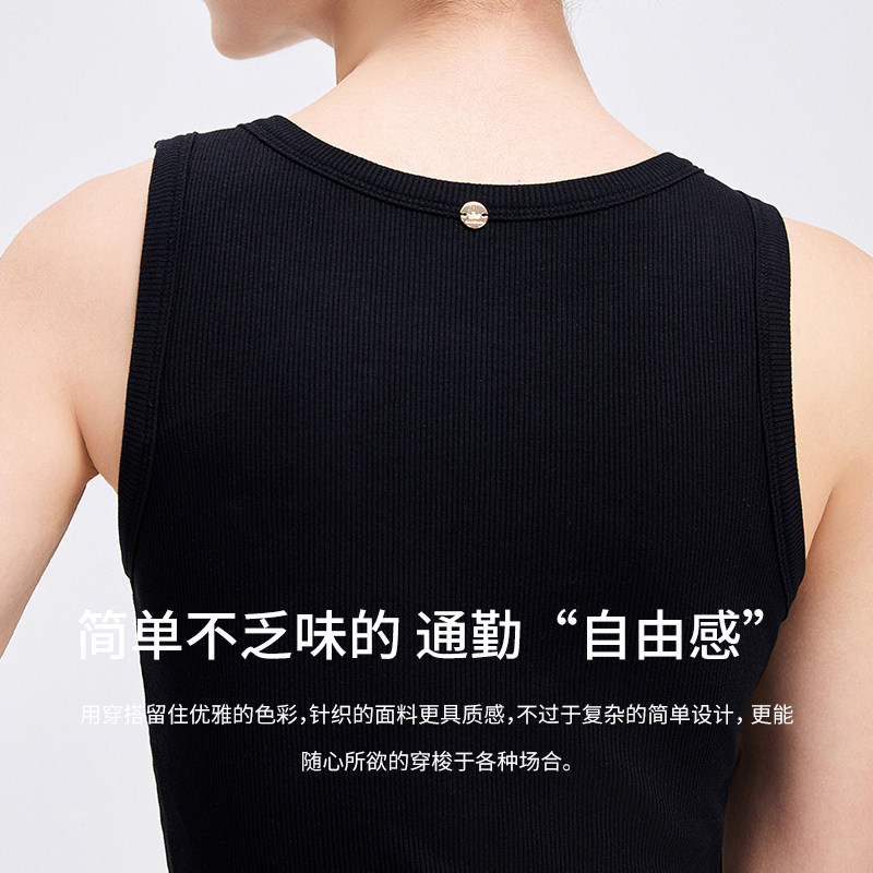 Navigare意大利小帆船黑色修身吊带背心女士夏季针织内搭打底上衣