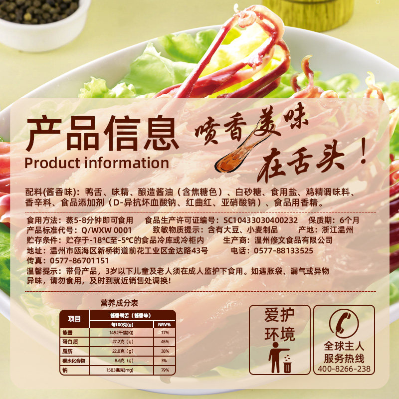 修文鸭舌温州特产修文鸭舌大号生鲜调理酱鸭舌头温州鸭舌称重500g