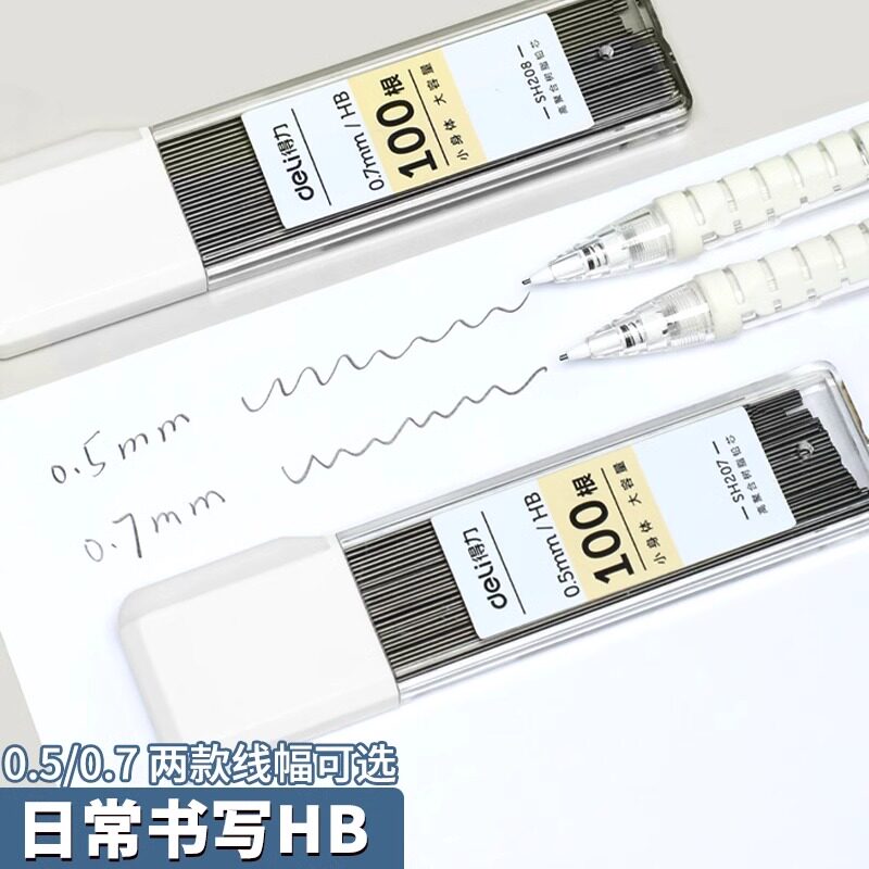 得力自动铅笔芯小学生用2b铅芯0.5自动笔铅芯0.7mm通用大容量铅芯
