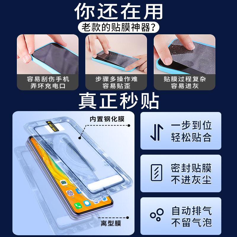 新升级秒贴防爆膜 一盖一划 一秒轻松贴膜