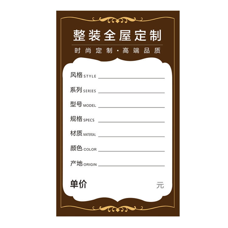 商品价牌 全屋定制单价牌 标价签纸 沐浴房订制价格签家居标价牌