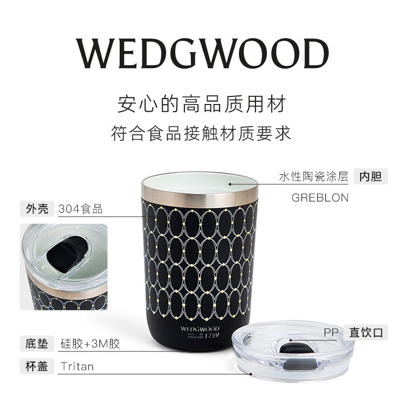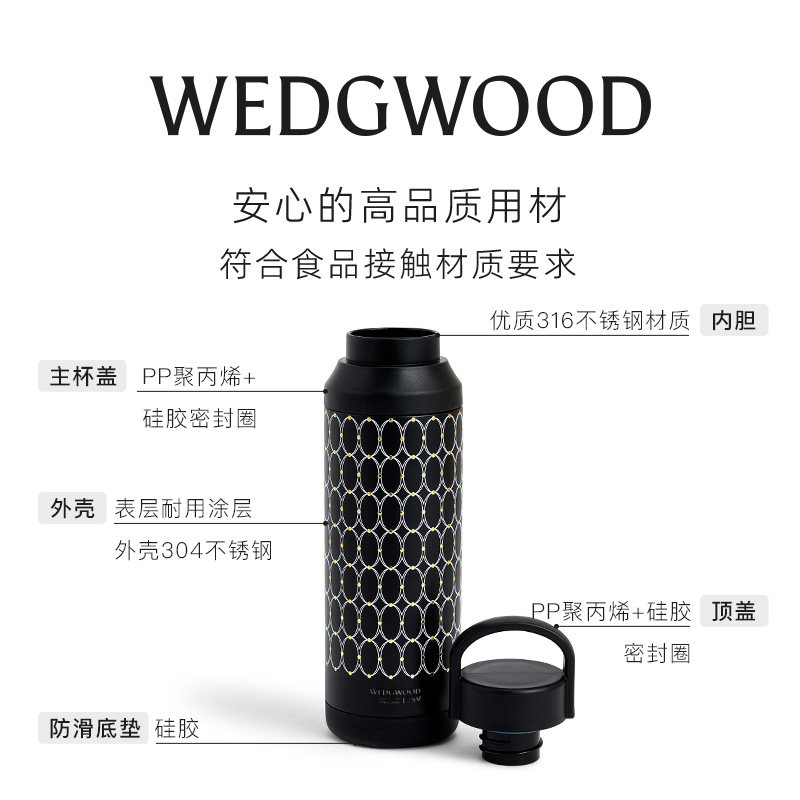 WEDGWOOD威基伍德金粉年华曜石黑运动保温瓶保冷保温杯随行杯送礼