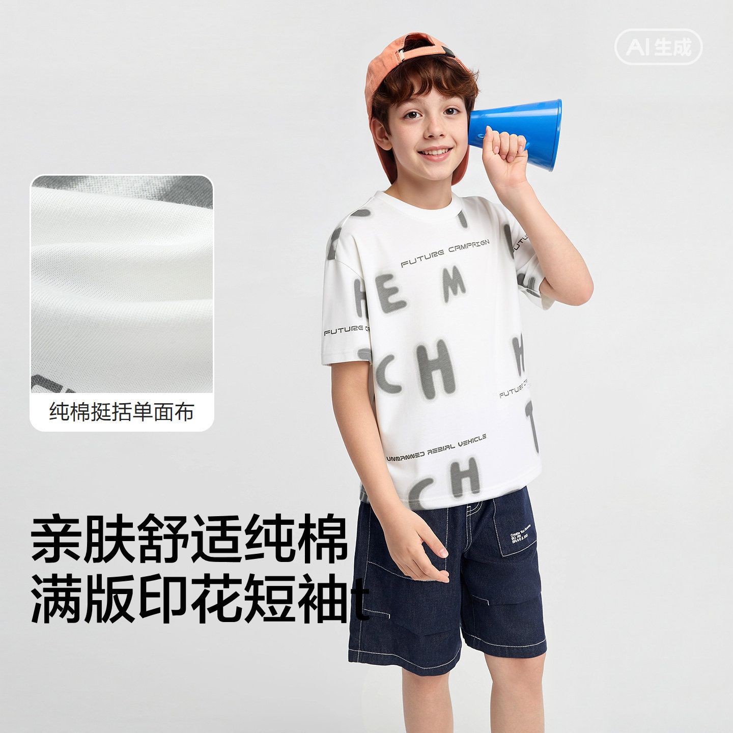 纯棉短袖t恤,满版印花图案