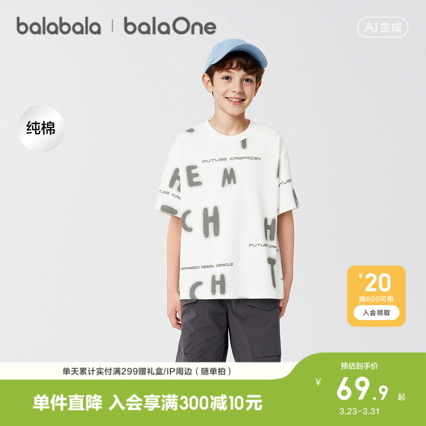 巴拉巴拉童装男童短袖t恤儿童2026新款夏装大童纯棉上衣舒适时尚