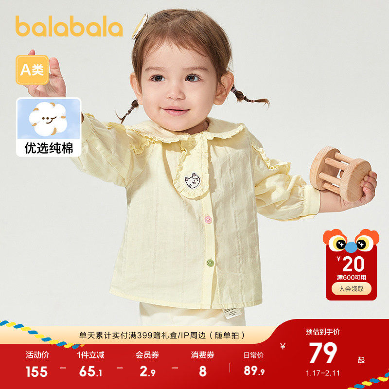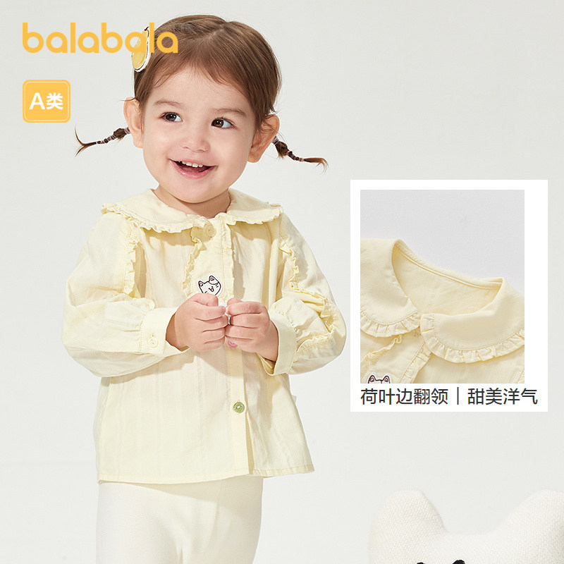 巴拉巴拉童装婴儿长袖衬衫宝宝上衣女童荷叶边翻领甜美文艺气质萌