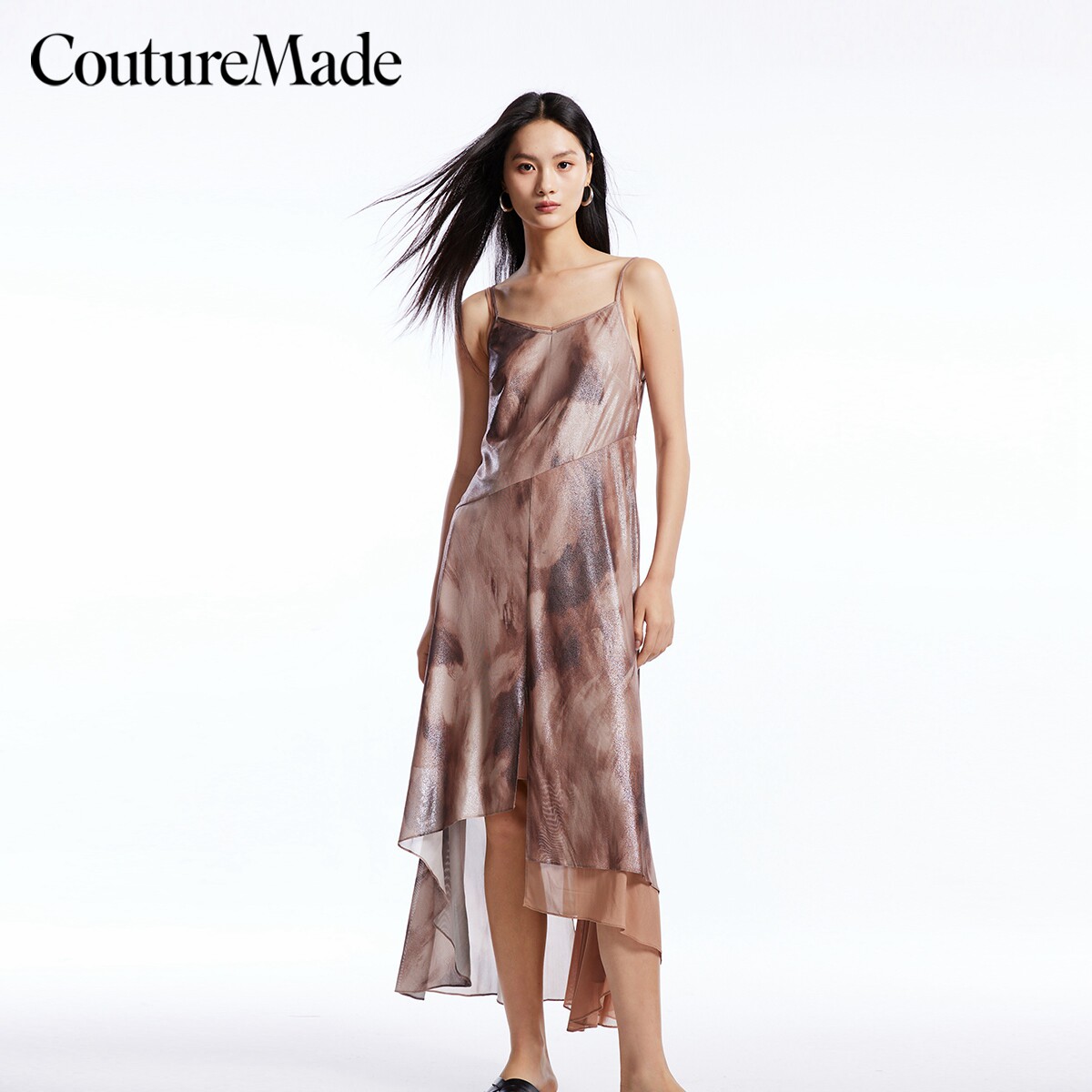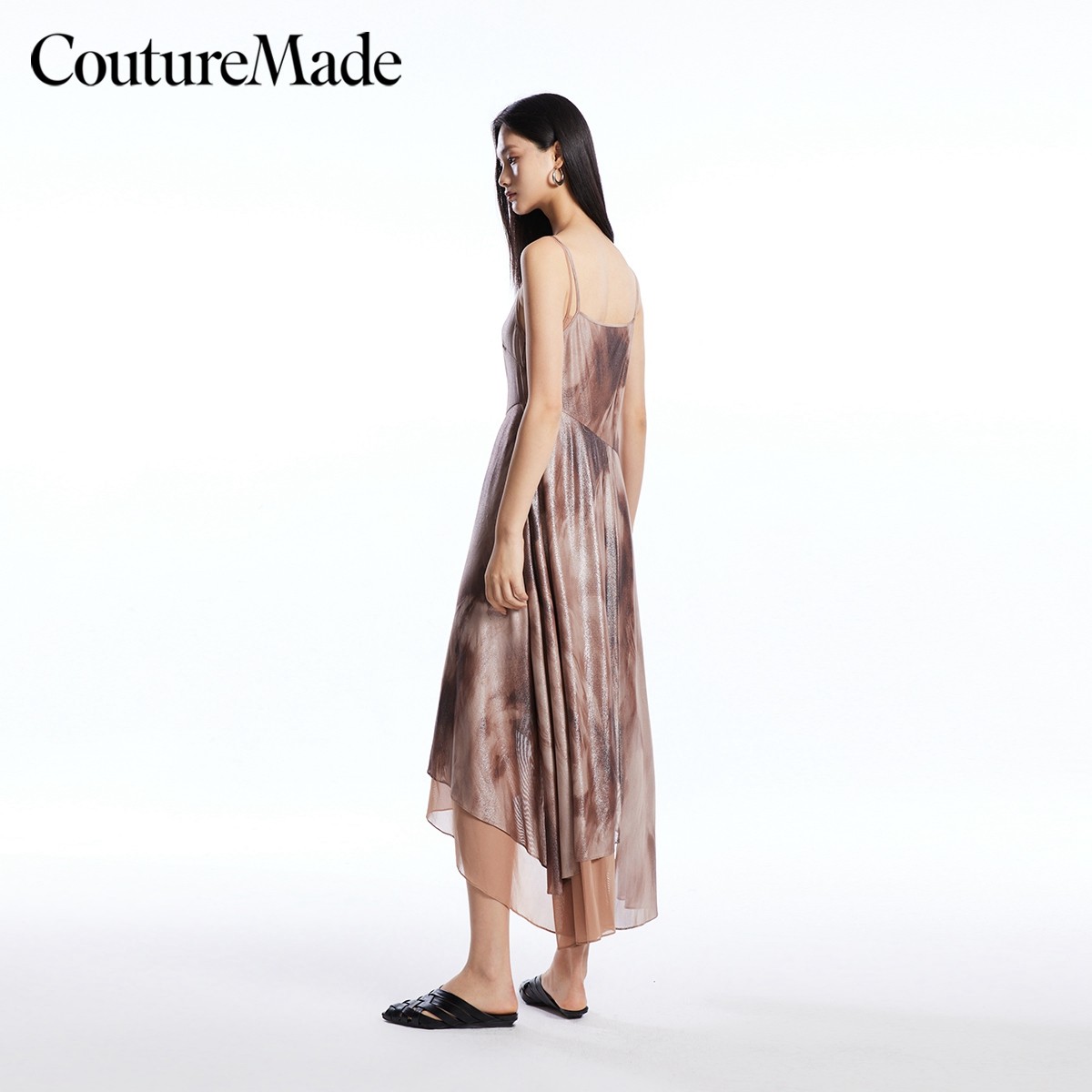 Couture Made连衣裙秋冬V领不规则裙摆收腰吊带长裙32437A025