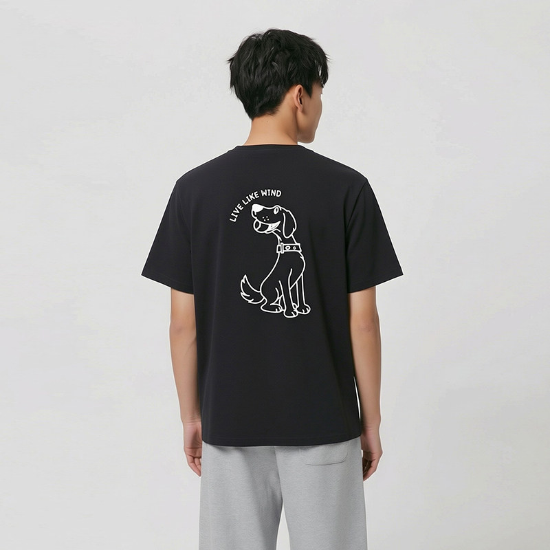 热风2026年夏季新款男士纯棉宠物趣味印花短T恤宽松舒适