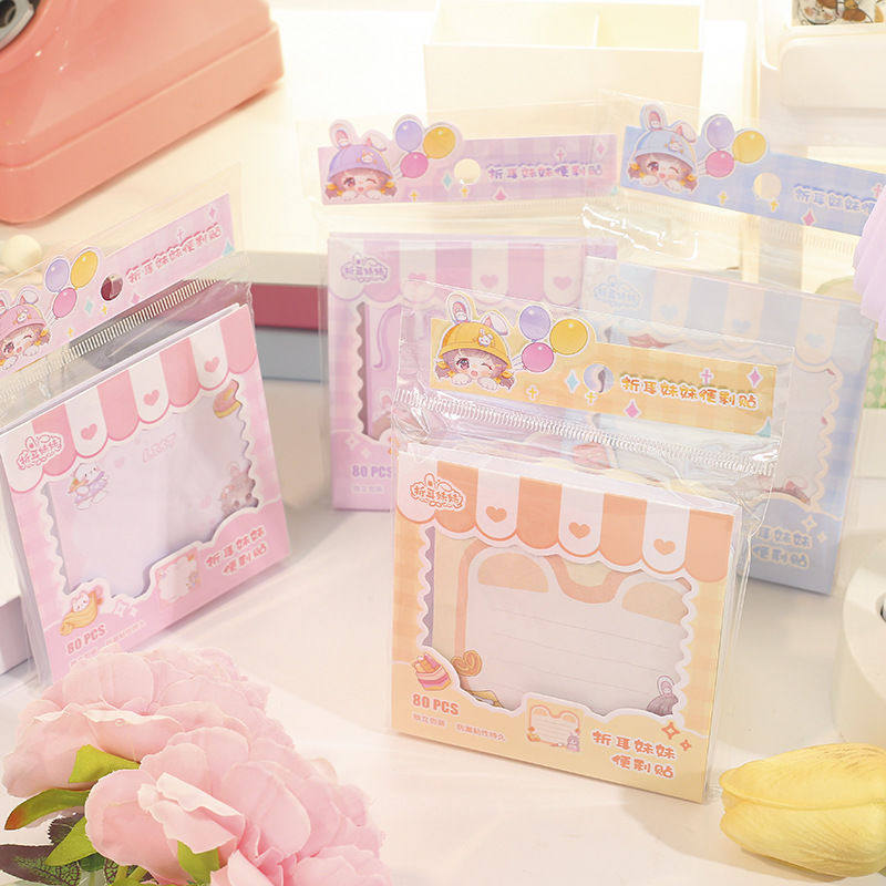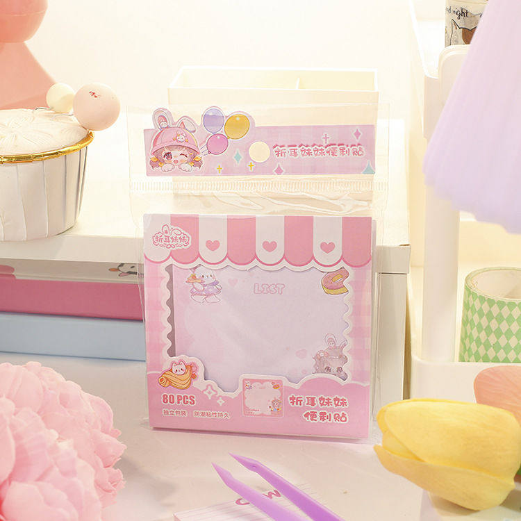 高颜值少女心便签本折耳妹妹便利贴有粘性N次贴学生可撕记事本