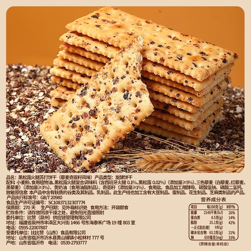 比比赞黑松露火腿苏打饼干单独小包装咸味办公室解馋零食休闲食品