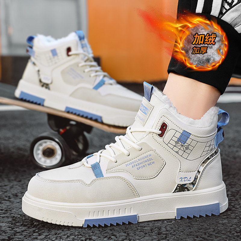 男鞋冬季加绒保暖加厚棉鞋2025新款高帮板鞋东北青少年马丁雪地靴