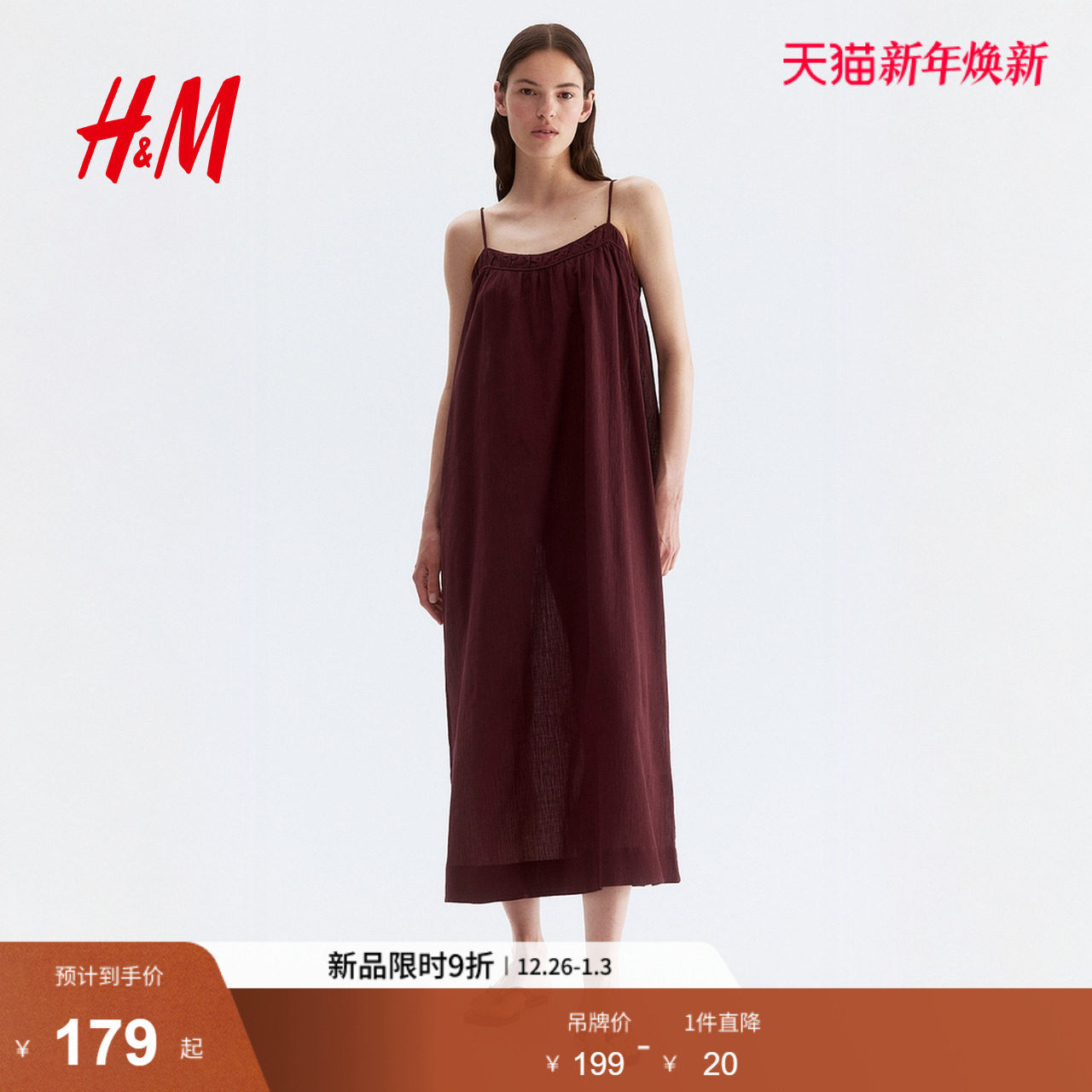 HM女士连衣裙春季皱感吊带连衣裙1290597