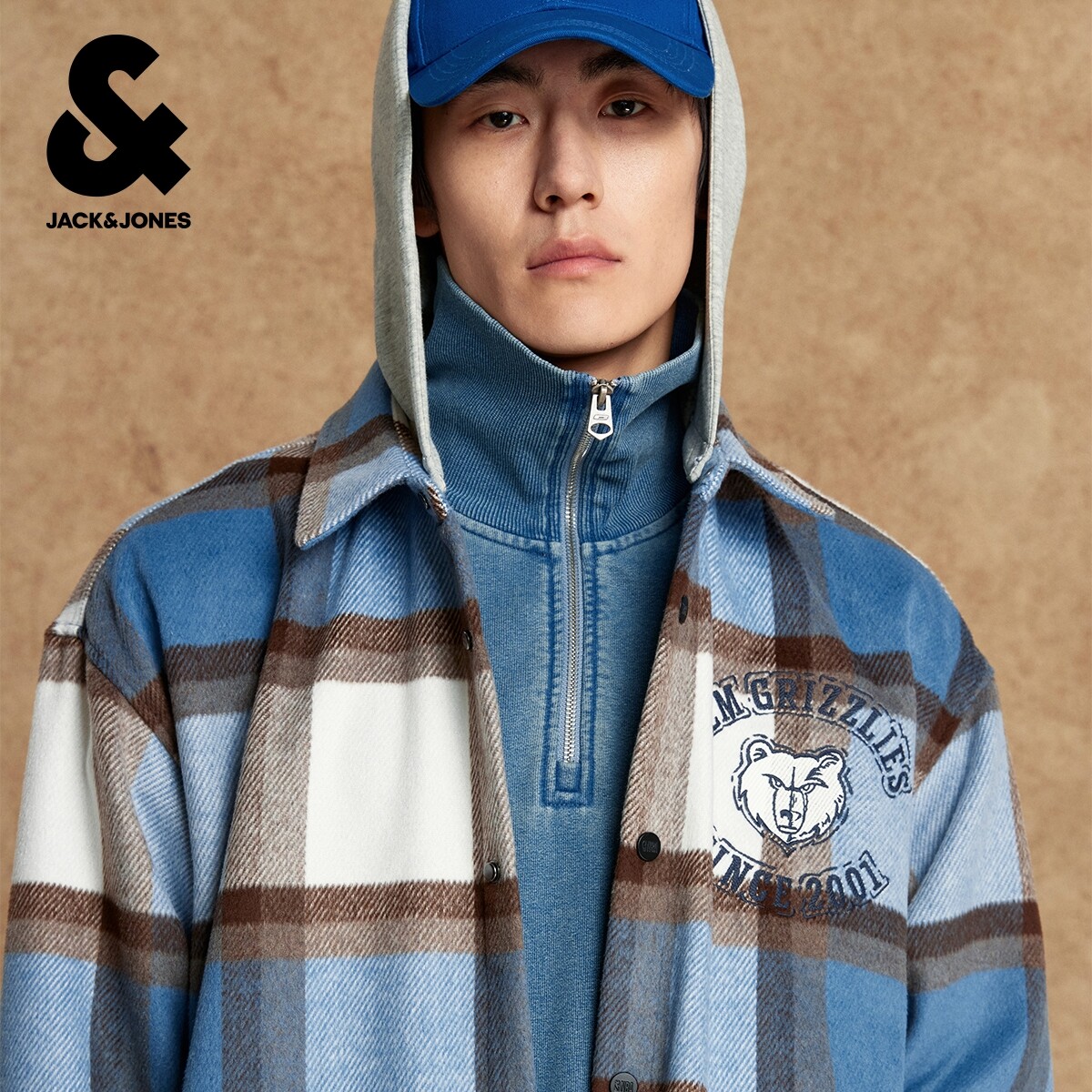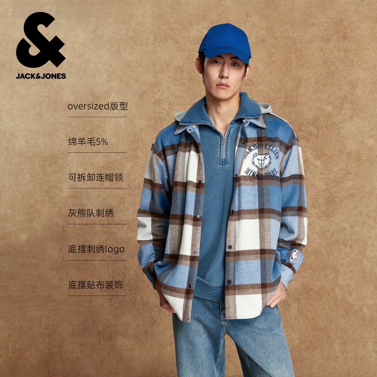 【NBA联名款灰熊队】杰克琼斯男装春衬衫外套精致刺绣百搭连帽